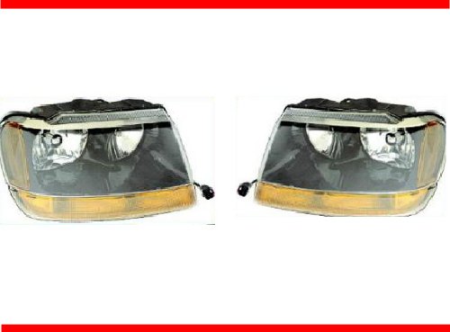 1999-2004 JEEP GRAND CHEROKEE LAREDO Headlight Set LH Driver and RH Passenger Headlights 99 00 01 02 03 04 (These headlamps will also fit the Limited model) 1999 2000 2001 2002 2003 2004 Left and Right Hand Headlamp Pair