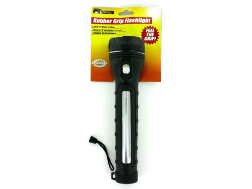 Heavy duty flashlight is ideal for home or auto. Uses 3 "D" batteries (not included). Has a hanging strap for convenient access in garages or closets. Comes packaged on a hang card. Measures approximately 10" long with 2 1/2" illumination area. Colors: black,silver; Materials: plasticIf there is a color/size/type option, the option closest to the image will be shipped (Or you may receive a random color/size/type).