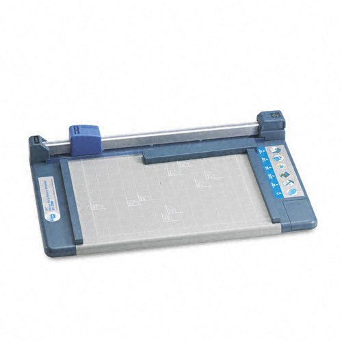 Patented locking rail mechanism and premium carbide blade ensure a clean, accurate cut. Adjustable magnetic paper gauge is great for making repetitive cuts. Durable metal base is calibrated and features alignment grid, ruler and preset measurements for common-sized items. Cuts mat board, card stock, plastic sheets, 1/8" foam board, etc. Handy storage compartment for extra blades and cutting mats. Global Product Type: Trimmer Boards-Rotary; Trimmer Board Type: Rotary; Sheet Capacity: 30; Cut Length: 15 in.