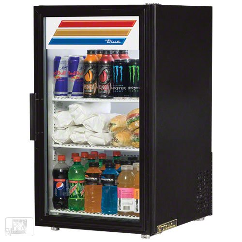 The 20” Swing Door Countertop Merchandiser (GDM-6) is a classic refrigerator with a sleek black exterior and full-panel glass front. This True product is created with a single door in the front, making it great for attractive display in unused corners or against walls. The refrigerator includes other innovative features as well: Ecomate insulation is a new high-density material that lines the interior of the unit, keeping your equipment earth-friendly and highly efficient. The interior of the unit is also geared towards making display items look great. A fluorescent light includes a safety shield and provides longer lasting, brighter lighting that will not cast shadows. Features: Energy efficient thermal glass doors on front of refrigerator, NSF approved white aluminum with stainless steel floors, Aluminum door frames and positive seal self-closing doors, Foamed in place, high-density, CFC-free polyurethane insulation, PVC coated wire shelves are adjustable to fit more inside refrigerators. Benefits: Florescent interior lighting lasts longer with brighter, shadow-free illumination, Evaporator covered in epoxy to eliminate the potential of corrosion, Sealed evaporator fan motor with large fan ensures colder holding temperatures. Additional Considerations: Depth does not include 1 3/8" for door handle.